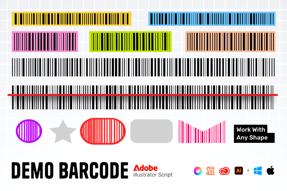 This powerful and easy-to-use Adobe Illustrator JSX script lets you generate demo barcode lines inside any selected shapes.