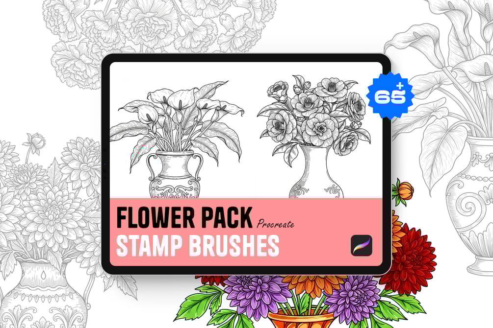 Enhance Your Digital Artwork With The Flower Pack ✦ Procreate Stamp Brushes! This Collection Includes 65+ Beautiful Flower Stamp Brushes, Perfect For Illustrators, Designers, And Artists.