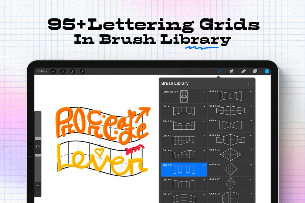 Enhance your hand-lettering with the Lettering Grids ✦ Procreate Stamp Brushes! This pack includes 95+ lettering grid stamp brushes, designed to help artists, calligraphers, and designers create precise and dynamic letterforms effortlessly.