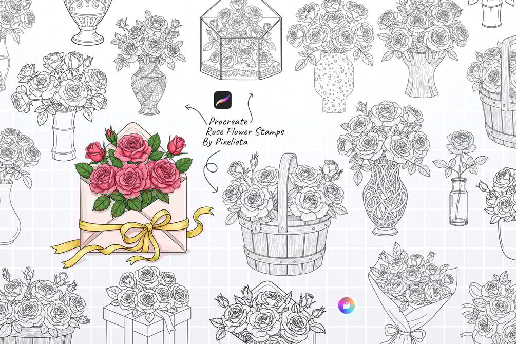 From Romantic Rose Bouquets To Detailed Flower Vases, Each Stamp Is Perfectly Crafted For Quick Use In Greeting Cards, Invitations, Digital Paintings, And More.