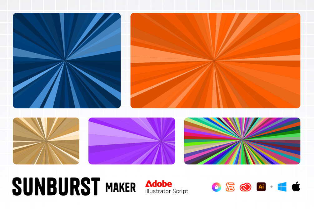 Sunburst Maker ✦ is a powerful Adobe Illustrator script designed to instantly generate randomized sunburst compositions with modular color systems, random ray logic, and creative bursts suitable for posters, vintage art, comics, motion graphics, and beyond.