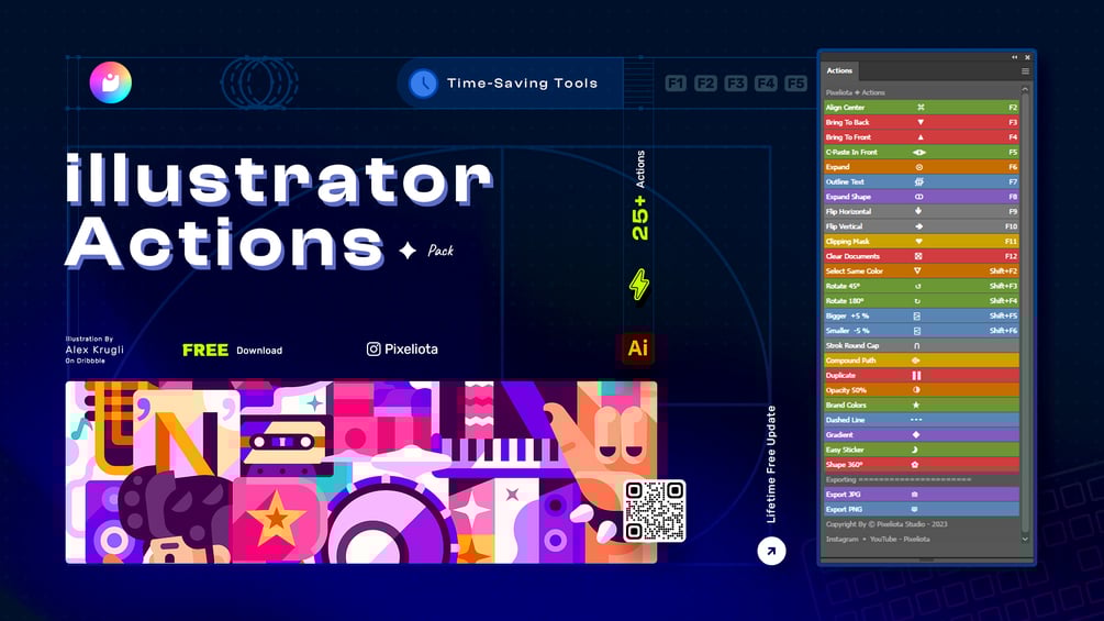 Elevate your illustrations, designs, and projects to new heights with the Time-Saving illustrator Actions β¦ Pack. Join countless designers who have already revolutionized their workflows with this indispensable set of tools. Get ready to save time, boost your creativity, and create jaw-dropping artwork effortlessly.